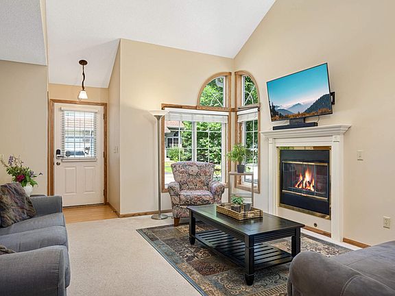 Welcome to this updated end-unit townhome featuring 3 bedrooms/2 bathrooms, vaulted ceilings and an open concept with lots of natural light! Main level offers a large living/dining room with a gas fireplace, new lighting. Kitchen features oak cupboards, beautiful backsplash, NEW dishwasher. Main floor laundry has a new washer. Main floor 1/2 bath. Private patio. Upper level features 3 bedrooms, 2 large walk-in closets and a full bathroom. The finished basement offers a large family room, large storage room, newer water heater. See list of Supplements. Sofa(no cost), bar stools negotiable. Located In the Mounds View School District and close to the freeway (694 & 35) Great location and lots of space! Close to schools and Long Lake, Silverwood Parks, much more!