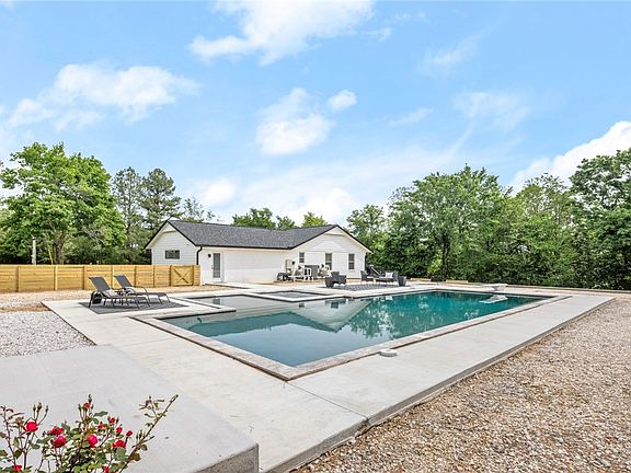 This property has it all! Nestled in a prime location on 2.5 acres, this stunning property boasts a fully upgraded 2,744 sqft main house featuring 4 bedrooms and 3 bathrooms, including two master suites and a 1500 sqft 2 bed 1.5 bath garage apartment for a total of 4200 heated and cooled sqft! Modern aesthetics define the interior with new porcelain tile flooring, fresh paint, a new roof, and a newly constructed heated salt water pool complete with a built-in 12 person hot tub, 17' shallow end for water spots, and a baja deck. Adding to the allure is the spacious garage apartment that includes a full kitchen and laundry, and a gameroom with a storm shelter. A vast 2,000 sqft, 3-bay heated and insulated metal shop building presents endless possibilities for contractors or business owners needing substantial space for equipment. This property is a versatile gem perfect for both residential comfort and commercial utility. The house and garage are on separate electric meters. See attached features and upgrades