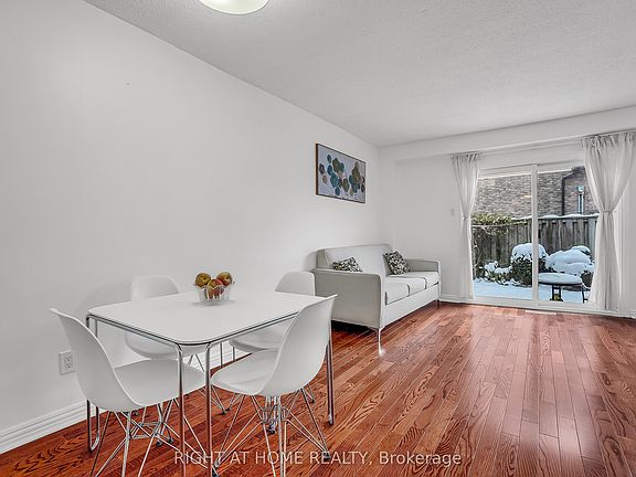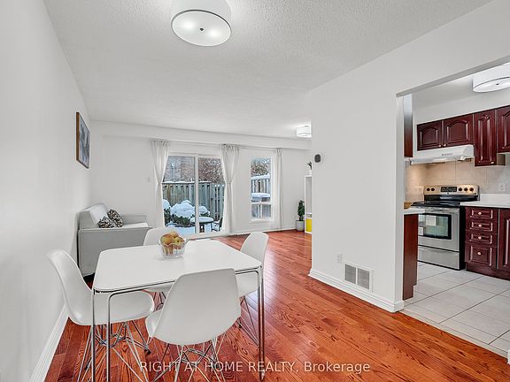 Welcome to Townhome 42 at 1121 Sandhurst Circle, ideally situated in the highly sought-after Agincourt community of North Scarborough. Located just steps from top-rated schools, grocery stores, restaurants, Woodside Square and convenient transit options including the new Scarborough Subway Extension terminal! This well-maintained residence features 3 bedrooms, 2 bathrooms, a finished basement, a private fenced backyard, a single car garage and parking for two vehicles. The main level showcases a modern kitchen complete with quartz countertops, tile backsplash, stainless steel appliances and abundant cabinetry. The adjoining living and dining areas offer rich hardwood flooring, generous natural light and direct walkout access to the backyard, creating an inviting indoor-outdoor flow. Upstairs, all three bedrooms feature hardwood floors, large windows and ample closet space. The primary suite includes a spacious walk-in closet, with all rooms conveniently located around a central hall closet and 4-piece bathroom. The finished basement provides valuable additional living space, perfect as a family recreation room, home office, or even an extra bedroom complete with a 3-piece bathroom. Additional updates include modern lighting throughout and a highly efficient heat pump and furnace system (2023) for year-round comfort and energy savings. Lovingly cared for by its current owners, this home is ready to welcome its next family to enjoy comfort, convenience and community in one of Scarborough's most desirable neighbourhoods.