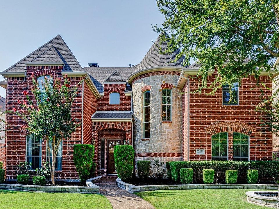 1121 Waterford Way in Allen, TX, is a stunning single-family home located in the Waterford Crossing neighborhood. Built in 2004, this spacious property boasts 5 bedrooms, 4 bathrooms, and spans 4,289 square feet. This home features charming interior accents, high ceilings, and warm paint colors. The gourmet kitchen is equipped with stainless steel appliances, a large kitchen island, granite countertops, a butler's pantry, 6 burner Viking cooktop, and a walk-in pantry. There is also a breakfast area and formal dining room. The family room includes a gorgeous stone fireplace surrounded by custom bookshelves. The downstairs primary bedroom offers a sitting area and a private bathroom with a separate tub and shower, along with a large walk-in closet. There is also a second bedroom and full bathroom downstairs. Upstairs, you'll find three bedrooms, two bathrooms, a game room, and a media room perfect for family movie nights. The property also includes a community pool and trails within walking distance. It's conveniently located near highways, making it an ideal choice for families seeking comfort and accessibility. Easy access to shopping, entertainment, parks, and other amenities.
