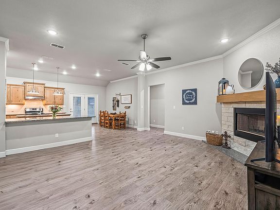 Welcome to your dream home in the prestigious neighborhood of Fountain Hills, located in Lubbock-Cooper ISD. This stunning 4 bedroom, 2 bathroom home presents the perfect blend of elegance and modern luxury. Clean as a whistle, truly move-in ready! The kitchen is equipped with top-of-the-line appliances, ample counter space, and custom cabinetry, offering both style and functionality. Outside discover a large porch that provides a cozy space to relax and entertain. As you step into the home, you will find a nice spacious entrance and a stunning stone fireplace in an open concept living/kitchen. High quality vinyl floors, Plantation Wood shutters throughout, Granite countertops, Mudroom, Plenty of Storage are just a few of the things to fall in love with. Isolated master with walk-in-closet and private bath, double vanities, soaking tub and separate walk-in shower. Back entry garage. Beautiful front porch!! Near restaurants, stores and minutes away from anywhere in Lubbock. Schedule your tour today!