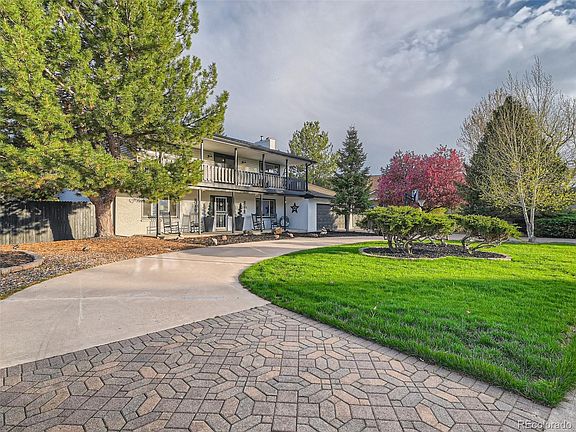 Welcome to the highly coveted neighborhood of Rowley Downs in Parker, Colorado. This remarkable corner lot home offers a blend of comfort, style, and functionality. As you approach, you'll be greeted by a long and circular driveway, leading to a two-car garage.