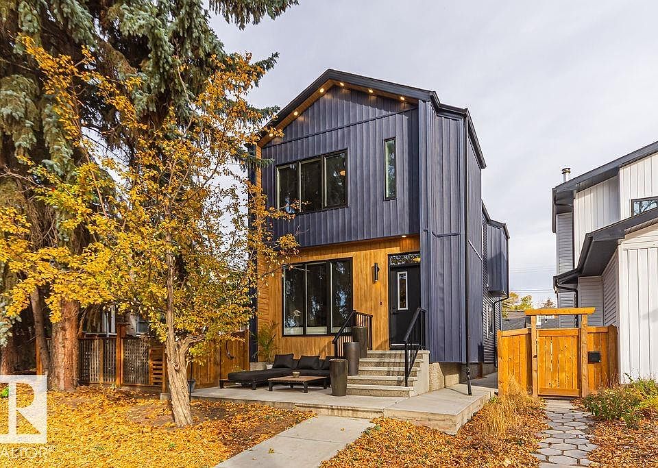 MODERN SCANDINAVIAN SANCTUARY steps from Ada Blvd in Highlands, Edmonton's most coveted riverside community! This custom-built Vida Nova Homes MASTERPIECE offers 4 bedrooms, 3.5 bathrooms & 1800+ sq ft of light-filled luxury. Walk to river valley trails, Highlands Golf Course, cafés, schools, and only 9 minutes downtown! Stunning open-concept design features white oak LPV flooring, floor-to-ceiling ladder bookcase, designer wood divider & extended walk-through pantry. Chef's kitchen has premium S/S appliances, wine fridge, QUARTZ countertops & seamless storage. Upstairs, there are 3 bedrooms including spa-like primary with a MASSIVE WIC & 5pc ensuite, PLAYFUL LOFT NET, UPSTAIRS LAUNDRY & 4pc bath. Basement: high-end epoxy flooring, 4th bed/office & abundant storage. Double detached garage with INNER BAY DOOR. Move-in ready with premium finishes, natural light & timeless Scandi elegance. Investment-grade infill in Edmonton's fastest-growing luxury market! TOO MANY UPGRADES TO LIST! COME SEE FOR YOURSELF!