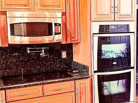 This four bedroom, 2 1/2 bath layout offers, charm and elegance, featuring a stately staircase upon entry. The elegant downstairs area boasts an office for business. There is also a lush, seating area to sip coffee or tea just outside a spacious kitchen. The well–planned culinary space provides double ovens, a sleek cooktop, dine–in area, as well as bar seating, a massive amount of storage, and an adjustable mounted television. Downstairs also presents entertainment space which contains bar seating, a drink refrigerator, and opens to an expansive outdoor oasis.