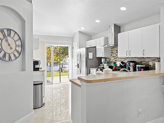 Gas stoveLight finishesOpen layoutOpen kitchen floor planBuilt in shelvesTile floorsPatio area