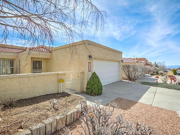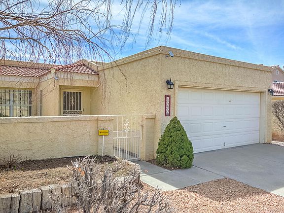 This single story 3 bedroom townhome is remarkably low maintenance, with serene and indoor and outdoor entertaining areas! Located conveniently in the NE Heights near shopping, highly graded schools (O'Keefe, Eisenhower, Eldorado) in the quiet Academy Ridge subdivision! Tile floors throughout, beautifully updated kitchen with granite countertops and stainless steel refrigerator, stove and microwave. Formal dining room with beautiful light as well as area in kitchen for nook or extra culinary creation space. Living room with high ceilings and custom wood burning fireplace. Also comes with washer/dryer! Back patio with latilla cover and xeriscape plantings, side yard includes a dog run to keep your bestie safe while you are away. Preinspected by General Inspectors, report will be available.