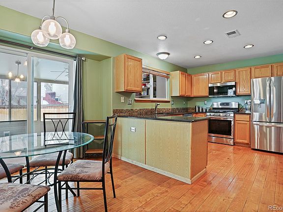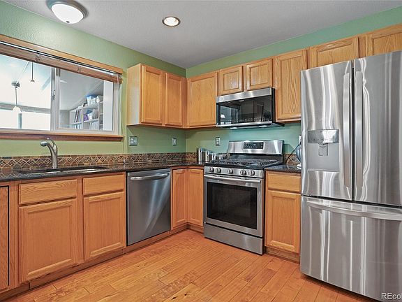All stainless appliances were new in 2018. The main floor features a stunning Champion Sun Room, added in 2021 (A $48000 addition). The upper level offers 3 bedrooms and 2 full bathrooms that have been remodeled and include a spacious primary suite. The additional two bedrooms share a large full bath. The basement has a bonus room that has been finished to add an extra area that can be used for an office or extra space. The basement has roughed in plumbing and plumbed for another washer/dryer. Walk out to the deck and down to the backyard from the sunroom. A fully fenced yard completes the backyard, ready for your Colorado nights. A new roof (Lifetime), garage doors, and gutters were installed in 2021. Many inspections for furnace, sprinklers, cleaning, and servicing of the fireplace, Monster Vac has cleaned the vents and more. There is a one-unit washer/dryer near the 1/2 bath, with 1762 Square Footage on the upper and main levels. The basement is 576 square feet with 165 square feet finished.