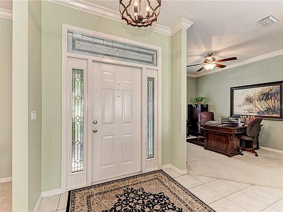- Interior Features: Ceiling Fans(s), Eating Space In Kitchen, High Ceiling(s), Stone Counters, Walk-In Closet(s), Crown Molding, Solid Wood Cabinets, Solid Surface Counters, Window Treatments