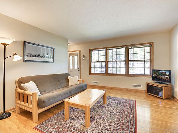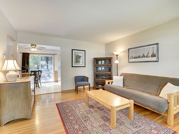 Beautifully updated Walkout Rambler with hardwood floors added through kitchen and all main floor bedrooms freshly painted, Wood accent wall in living room, main bedrm w closet barn door. Many updates: 2017-New siding and roof, 2019- Central air, Washer and Dryer, 2020- Chain link fenced yard, perfect for kids and pets, ceiling fans lights throughout. Lower level family room with gas fireplace and dry bar. Lower level bath features in-floor heat. Enjoy barbeques on your Maintenance-free deck, large patio, inground sprinkler system, private backyard, 16x12 storage shed with garage door and opener for easy access. Heated and insulated garage. This home is truly move in ready... Hurry!