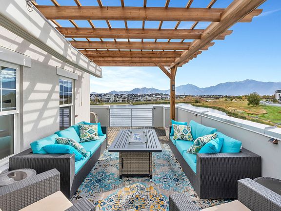 Wake up every day to breathtaking, unobstructed views of Oquirrh Lake from this stunning Daybreak waterfront townhome. With two private balconies, an inviting front porch facing the water, and an expansive rooftop terrace, this home offers some of the most coveted indooroutdoor living spaces in the community, perfect for sunrise views and effortless entertaining. Inside, the open-concept layout is filled with natural light from the large windows framing the lake. The beautifully updated kitchen features crisp cabinetry, black quartz countertops and backsplash, and stylish modern finishes that elevate the entire space. The primary suite is a true retreat, boasting full windows on two walls, a generous walk-in closet with extensive shelving and hanging space, and a spa-like ensuite bathroom complete with a double vanity and a Euro-glass shower. Additional features include a laundry room with built-in cabinetry for extra storage, an attached two-car garage with an epoxy floor, and brand-new carpet throughout the home. This is the ultimate Daybreak lifestyle, waterfront living, unbeatable views, and exceptional indooroutdoor spaces all in one. Homes like this rarely come available on Oquirrh Lake. Schedule your tour today and experience this remarkable townhome for yourself.