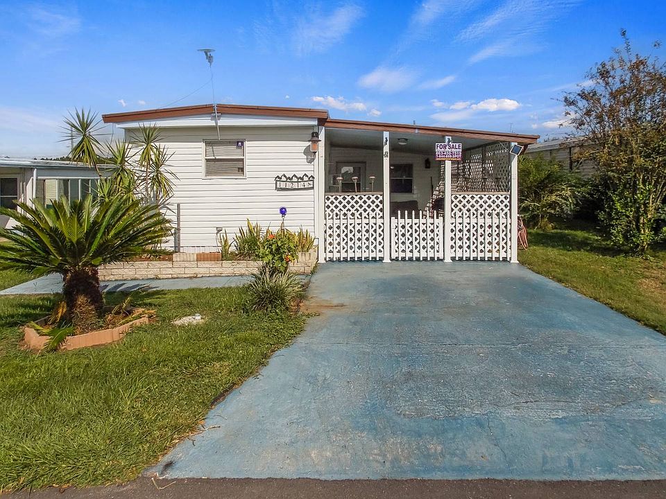 ** Exclusive Listing! Age 55+ Land Lease Community. Contact listing agent below for ALL showings and offers.** You will have an easy time making yourself right at home as the new owner of this 1976 Guerdon Belmont. Priced right at $17,500, and measuring 12x56, plus the 11x21 living room/Florida room addition, this home will provide an approximate total of 920 square feet of interior living space, with two bedrooms and one bathroom. It is move-in ready and will be sold unfurnished (appliances will be included), so you can quickly start to make this your home, your own way. Your new home is ready and waiting for you in Blue Jay Mobile Home and RV Park of Dade City, a very friendly and welcoming 55+ adult community. The monthly lot rent of $631.80 includes water, sewer, trash removal, and use of all of the park amenities. An annual county tax of $95 is due each January. This affordably priced home has what it takes to be your happy place! Call today and let us help you make it yours! This is a manufactured home on leased land. The land/lot is not included with the sale.