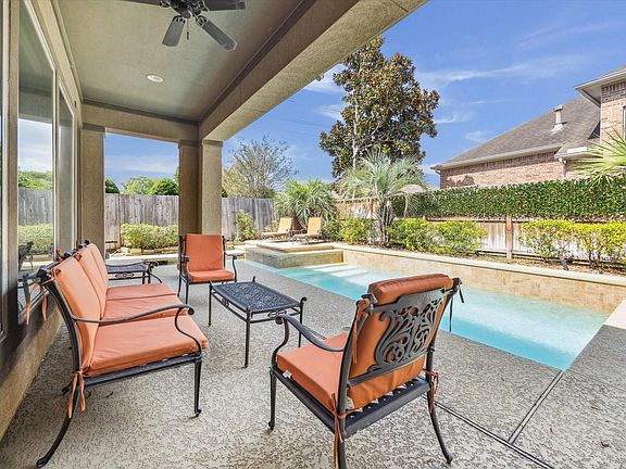 Serene pool viewsStainless steel appliancesElevated tanning deckWood-like flooringGorgeous window treatmentsCovered patioCharming kitchen