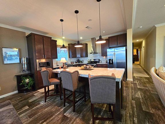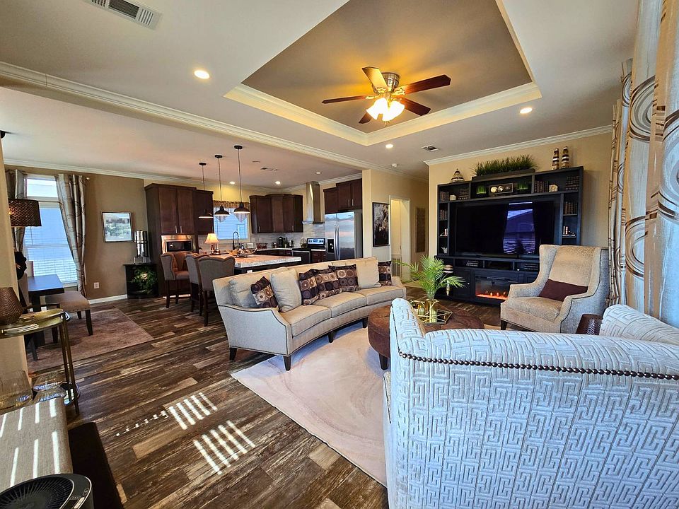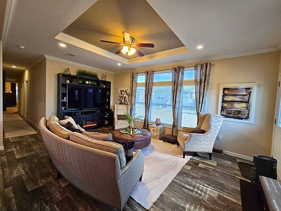 Beautiful and well-maintained 4-bedroom, 2-bath doublewide located in the highly desirable Harston Woods community. Inside, the open-concept layout features a spacious living room with a tray ceiling, large windows for natural light, and a seamless flow into the kitchen and dining areas. The kitchen includes generous cabinet storage, ample counter space, an oversized island with bar seating, and stainless-steel appliances, refrigerator, stove, microwave, dishwasher, and garbage disposal. The primary suite offers a private bath and walk-in closet, while three additional bedrooms and a secondary bathroom provide comfortable flexibility for family, guests, or work-from-home needs. Outside, the home features a covered front porch, solar screens, gutters, a large carport, and a storage shed for added convenience. The community is clean, well-kept, and ideally located near major highways, offering easy access to entertainment, shopping, and great local restaurants. Lot rent is $750 per month, and community approval is required. Disclosures are regulated by the Texas Department of Housing and Community Affairs (TDHCA). Select furnishings may be available for separate purchase.