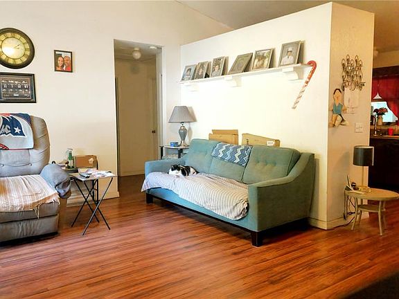 Ceiling fanCustom built-in shelvesSplit-concept floor planAll-natural wood cabinetsLaminate wood flooringWalk-in showerBuilt-in lighting