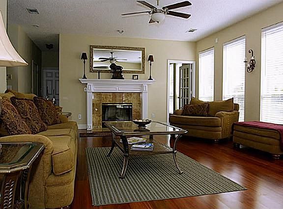 Two level home w breathtaking water view w fountains. Wood-like laminate flooring thruout formal dining, family living, study & hallway. Updated kit w stone-looking countertops & backsplash, freshly painted cabinets, ss appliances, c-tile & WIP. Study w built-in shelving & desks along one wall. All beds on second level. Master & secondary bedrooms split by game room. Master w fp & updated bathroom. Brick patio w white arbor over side area.