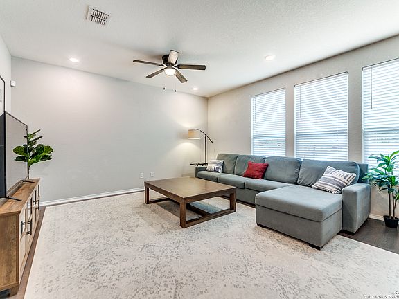 This immaculately maintained home offers the perfect blend of comfort, functionality, and style. Boasting 4 spacious bedrooms and 3 full bathrooms, this residence is designed to accommodate your every need. Step inside to discover an inviting open-concept layout, where natural light floods the space, creating an airy and welcoming atmosphere. The heart of the home features a very functional kitchen with sleek countertops, an island with bar seating, and ample storage, making it ideal for both everyday living and entertaining guests. You will also discover a secondary downstairs bedroom with an en suite bathroom. Upstairs, you'll find an additional family room, providing the perfect space for relaxation, movie nights, or playtime. Whether you're unwinding after a long day or hosting gatherings with loved ones, this versatile area offers endless possibilities. The primary bedroom is also on the second floor and includes an en suite bathroom and two oversized walk-in closets. On the second level, there are also two other secondary bedrooms and an additional full bath. Outside, the oversized back patio beckons you to enjoy alfresco dining, BBQs, or simply basking in the sunshine. It offers plenty of room for outdoor furniture, and is sure to become your favorite spot to unwind and entertain. Conveniently located in a sought-after neighborhood close to historic downtown Helotes and meticulously cared for, this home is ready for you to move in and start making memories. Don't miss your chance to make this stunning property yours!