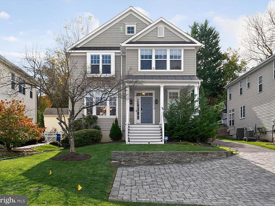 Welcome to Kensington View, an enclave of custom-built homes in North Kensington. Built in 2006, this Craftsman-style residence offers over 4,000 square feet of beautifully finished living space across three levels, blending timeless architectural details with modern comfort and functionality. The main level welcomes you with a charming front porch and an inviting foyer that opens to an elegant living room and formal dining room. The open-concept floor plan features gleaming hardwood floors, high ceilings, and abundant natural light throughout. The spacious great room with a gas fireplace flows seamlessly into the gourmet kitchen, complete with stainless steel appliances, granite countertops, an island with seating, and a sunny breakfast nook. A gas line has been run to the kitchen, offering the option for gas cooking. French doors lead to a large rear deck, perfect for entertaining or relaxing while overlooking the landscaped backyard. Upstairs, the primary suite impresses with a tray ceiling, spa-like bathroom featuring a soaking tub, glass shower, and dual vanity, plus an oversized walk-in closet with custom built-ins. Three additional bedrooms, a hall bath, and a convenient upper-level laundry room complete this floor. The finished lower level offers versatile living space, including a family room, fifth bedroom or in-law suite with ensuite bath, and a large storage room. Additional highlights include garage parking, a beautifully landscaped, low-maintenance yard, and an ideal location just blocks from the Metro station, shops, and restaurants, with an exceptional Walk Score of 91.
