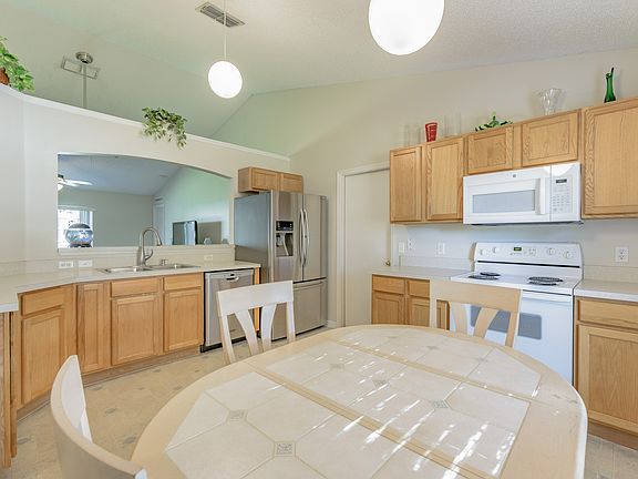 Prepare to Fall in Love! Beautiful 3 Bedroom, 2 Bath Home on a Quiet Street. Recently Painted Inside and Out! All Appliances Stay Including Newer Stainless Refridgerator and Dishwasher, washer and dryer. Fenced backyard. Large Eat-In Kitchen Overlooks the Greatroom that is wired for Surround Sound. Owners Retreat complete with Ensuite and Large Walk-in Closet. Soaring Ceilings in Main Living Area and Master Bedroom. The Large Park Like Back Yard is Fenced for privacy. Home is Centrally Located Close to Shopping, Dining and Entertainment with Quick Access to the Suncoast Parkway. Schedule your Showing Today!