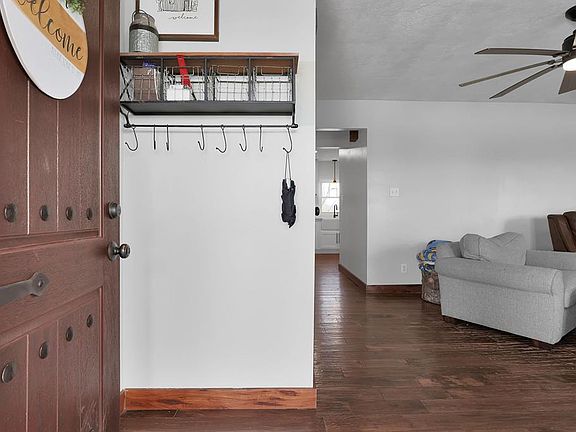Mini Farm on a Desirable Dead-End Road! Welcome home to this well-maintained ranch featuring numerous updates and charm throughout. Enjoy relaxing on the large front porch, then step inside to a cozy family room complete with a wood-burning stove and beautiful hardwood floors that flow throughout the main level. The fully remodeled kitchen is a chef's dream, showcasing new cabinets, granite countertops, a crisp white backsplash, and spacious pantry cabinets for abundant storage. The updated bathroom offers a spa-like retreat with double sinks, a large tiled shower, and a free-standing soaking tub. The main floor features three comfortable bedrooms, plus a bonus room upstairs ideal for an office or additional bedroom or just a fun hangout room. The finished walk-out basement adds even more living space, including a second family room, an additional bedroom, and a brand-new full bath with a walk-in tiled shower. You'll also find a large laundry area and direct access to the outdoors. Ste