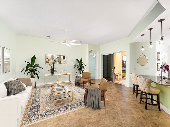 Move-in ready, like new GHO 2017 home on a large lot with water views. Features 2 bedrooms, 2 baths, and a versatile den that can serve as a 3rd bedroom or office. Built for efficiency with natural gas, durable metal roof, and a whole-house generator--helping keep bills low. The eat-in kitchen offers granite countertops, stainless steel appliances, and pristine cabinetry. Interior highlights include tile in main areas, luxury vinyl in bedrooms, spacious closets, and plantation shutters throughout. Enjoy a large laundry room with sink, 2-car garage with attic access, and a screened patio overlooking the water. Plenty of room for a private pool. Low HOA includes lawn care plus community clubhouse, pool, fitness center, and sidewalks. Available for immediate occupancy in the desirable Serenoa