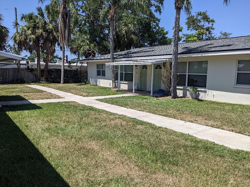 Dunedin: 2 bed/1 bath, approx. 900 sq. ft; very clean, first floor (no upstairs neighbors). The property is only 4 units: 2 units /bldg. Recessed lighting in living room; ceiling fan/lights both bedrooms; all tile/terazzo(no carpet); washer dryer hookup in unit, blinds included. Small private backyard patio. Nonsmokers only. Pet friendly: no pet deposit or pet fees. Off street parking: 2 spaces available per unit (no motorcycles). Credit/background check required. Deposit due at lease signing and 1st month due on move in. Central air/heat; new roof 2023. CURRENTLY OCCUPIED: DO NOT DISTURB TENANTS. FLEXIBLE OCCUPANCY: MOVE IN BETWEEN SATURDAY NOVEMBER 8 AND DECEMBER 1. Tenant pays all utilities. For more information or to schedule a showing call or text between 7am and 8pm. If no answer call/text will be returned.