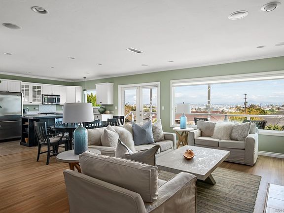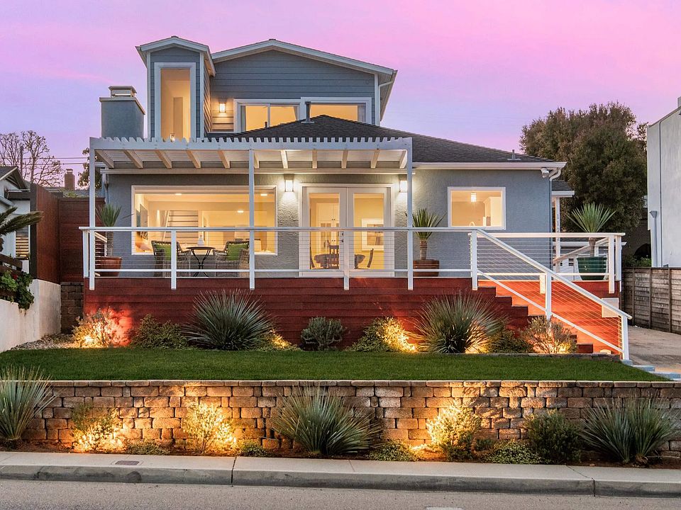 Picture-perfect exterior with wraparound deck complements turnkey interior complete with light-filled living areas, wood floors and fireplace. Walls of windows highlight skyline views. Floorplan features two entry-level bedrooms and baths with loft-like upstairs ensuite primary. Resort-like backyard is complete with al fresco dining areas, built-in bbq, fireplace and elevated lanai with adjacent patio perfectly situated to enjoy sunrises and sunsets.