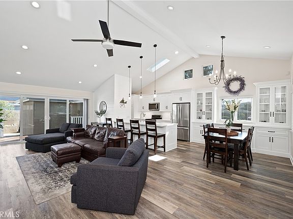 Welcome to this completely remodeled and meticulously well-kept Torrance Gardens home ready for it's new owner. Nestled in this tree lined neighborhood you feel the curb appeal as you are greeted by a picturesque picket fence lined porch wonderful for watching the Armed Forces Day Parade from the comfort of your own home. The Hardie siding combined with the cultured stone create an eye-catching image complimented by the routinely maintained landscaping and colorful flowers lining the exterior of the home. As you walk through the front door into the inviting open floor plan you are immersed in the space, light and cohesiveness of this well-designed layout. The vaulted ceilings with recessed lighting add to the already vast amount of space and a 10ft island with quartz countertop, acts as a focal point merging the flow from the kitchen, dining and living room, great for entertaining. An open entry nook to your left provides a perfect place for bags or on the go items with space for storage and a bench. To your right the dining room faces west for a lovely afternoon glow through Milgard casement windows which provide great ventilation and have been installed throughout the entire home along with waterproof composite plank flooring in a coastal live oak design which adds a great contrast to the clean white interior. The kitchen boasts a farmhouse sink and touchless faucet, matching s/s appliances, a powered skylight, custom designed cabinets with soft closing drawers and ample storage for all your chef's necessities. Dual sliding glass doors in the massive living room lead to the entertainers backyard where you can enjoy hosting on your Trex fade and stain resistant deck with lighted pergola and paver stone steps to the yard. Next to the backyard is a detached garage which offers storage, a quiet garage opener and a place to keep your car out of the weather with a driveway in front of the garage. All 3 bedrooms and both bathrooms are located off the hallway. 2 bedrooms in the front of the home provide plenty of room, light and closet space. A guest bathroom by the front of the home has a tub, shower and quartz counter top. As you enter the primary bedroom with en suite you pass by your large walk-in closet with access to attic space. Vaulted ceilings invite you into this spacious bedroom with an updated en suite with dual sinks. There is a laundry room, tankless water heater, HVAC and more. Close to Wilson Park, shopping, dining and the beach.