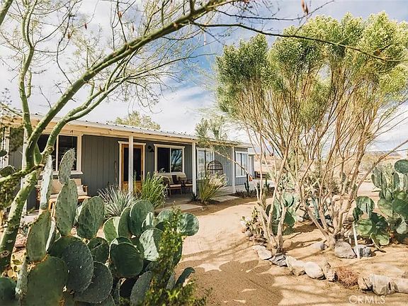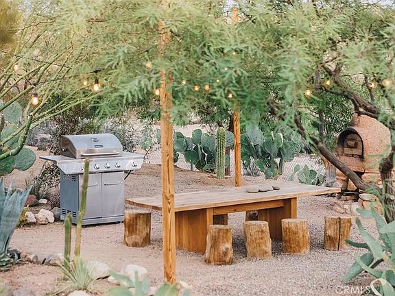 Welcome to your enchanting desert retreat! This charming 2-bedroom, 1-bath home spans 1,112 square feet and is situated on a sprawling 5-acre lot, offering an oasis of tranquility surrounded by stunning desert flora. Built in 1958, this remodeled gem showcases the perfect blend of vintage desert charm and modern convenience. As you step inside, you are greeted by beautiful Saltillo tile that flows throughout the open kitchen and living spaces, creating a warm and inviting atmosphere. The home is equipped with mini-split systems to ensure year-round comfort, making it a perfect getaway in any season. Step outside to discover your private outdoor living paradise. Enjoy al fresco dining from the pizza oven or gather around the fire pit for cozy evenings under the stars. The outdoor shower is a delightful touch, allowing you to rinse off after a day of exploring the desert landscape. Indulge in relaxation with your very own cowboy tub and spa, ideal for soaking away the stresses of everyday life. This property is located just a short drive down a dirt road from the main road and is near local Flamingo Heights favorites, providing easy access to the vibrant community while still offering a sense of seclusion. Whether you’re looking for a permanent residence or a vacation rental, this Yucca Valley home is the perfect desert retreat, inviting you to experience the beauty and serenity of desert living. Don’t miss your chance to call this oasis your own!