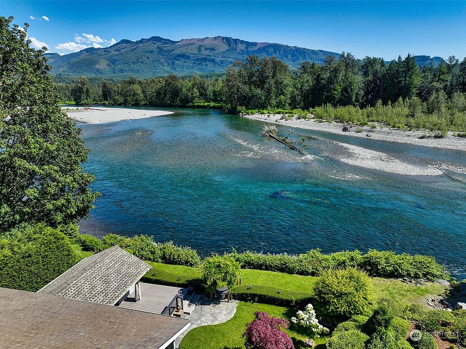 A rare riverfront retreat set at the dramatic convergence of the Wallace & Skykomish Rivers, offering 45' of private river frontage & spectacular fishing right outside your backdoor. This home captures sweeping mountain & river views from multiple vantage points & blends natural beauty with thoughtful, high-end updates throughout. The main level showcases a fully remodeled gourmet kitchen w/quartz countertops, Wolf dual ovens (convection & steam), and a custom-panel Sub-Zero refrigerator paired w/premium hardwood flooring. A cozy living room w/fireplace, spacious laundry room w/storage, main-level bedroom & a remodeled full bath complete the main floor. Upstairs, vaulted ceilings create an open, airy feel w/a generous primary bedroom & flexible office space, a large bonus room ideal for a 3rd bedroom or media room & an additional 3/4 bath. Custom wood doors, trim & warm pine accents add character throughout the home. The upstairs has been remodeled w/high-end engineered hardwood floors. All windows have been replaced with double-pane vinyl windows. Outside, enjoy a new covered riverside composite deck wired w/lighting, private stairs leading to the water & a hot tub w/river & mountain views. Attached 2-car garage w/sink, freezer & 2nd fridge. RV parking & 10’x20’ secured storage shed. Conveniently located near Highway 2, skiing, dining, and shopping. This is a peaceful mountain-river escape where the sights and sounds of the water are part of everyday life.