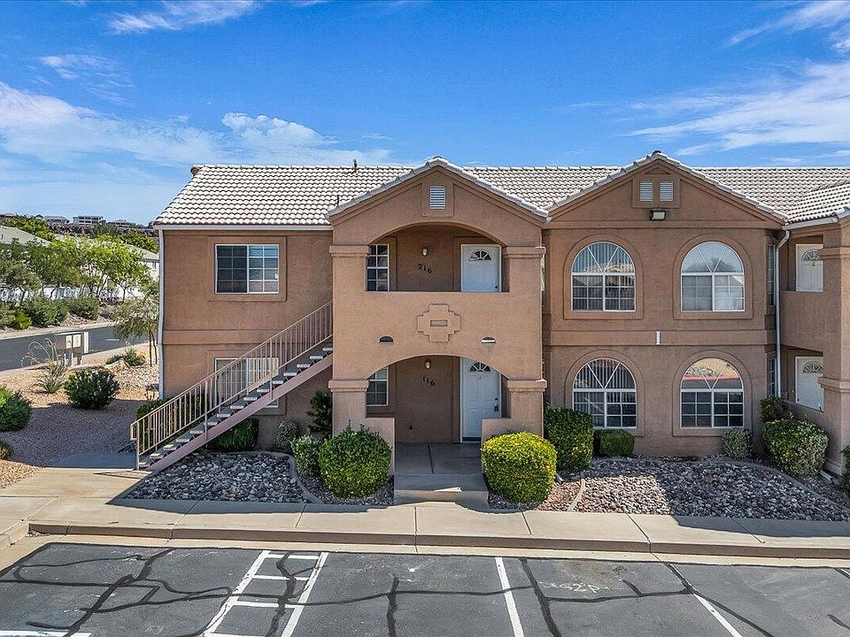 Prime location! This ground floor unit is just minutes from Utah Tech University, shopping, restaurants and IHC hospital. Idea for first time buyers, second home or investment opportunity. Functional floor plan with 2 bedroom/2 baths. The unit includes a one car carport along with an additional parking stall. The unit directly above is also available for purchase (MLS 25-165131), creating an exceptional opportunity.