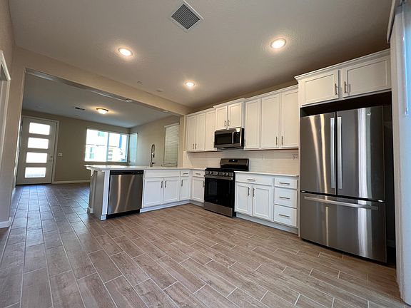 This home has 3 bed / 2.5 baths with an attached 1-car garage and 1 parking space on the driveway. Contemporary kitchen with upgrades including large beautiful white quartz countertops with stainless steel sink and ample cabinet space with modern premium color scheme; Upgraded stainless steel energy-efficient appliances including refrigerator, gas cooking range, microwave, and dishwasher. Open-concept floor plan seamlessly connects the spacious living area to the kitchen, breakfast bar, and powder room with large windows inviting natural light enhancing the home's warm and inviting feel.