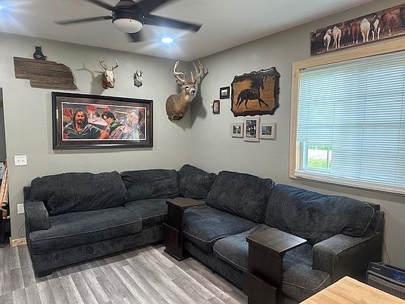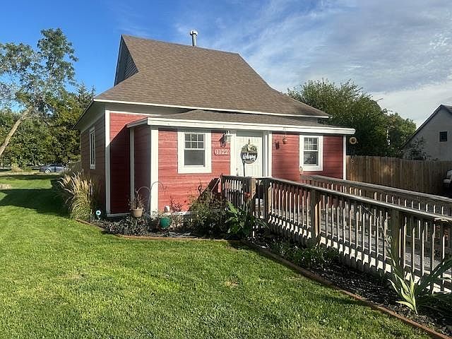 This remodeled house is located on a corner lot with all features on a single level. The property includes a bedroom with a large walk-in closet, a full bathroom with laundry facilities, & an open-concept living room & kitchen. The kitchen features a sizable island with a sink, ample cabinets, & countertop space. A pantry with shelving is situated near the kitchen. There is a handicapped ramp at the main entrance that leads to an enclosed porch. Spacious enclosed backyard & 2 stall detached garage.