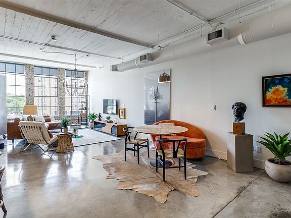 This Stylish 1bed, 1bath condo is located in the heart of Downtown Dallas and is move in ready! This unit features 1411 sf, a spacious layout including soaring ceilings, exposed brick and breathtaking views of the iconic Reunion Tower and Omni Hotel and expansive floor to ceiling windows with new solar blinds. Upon entry, be greeted by a stylish BR accentuated with custom closet space ensuring all your belongings are neatly arranged and easily accessible. Enter into your large living space with a cozy sitting area and a picturesque backdrop of downtown every day from the comfort of your living room. The unique metal divider is very versatile for creating additional space for either a personal workout area or another sleeping area. The kitchen is equipped with SS appliances (all new Feb 2022), granite counter tops and a kitchen eat-in island, combining style and functionality! The fabulously renovated large bathroom boasts custom vanity and shelve upgrades and a spacious custom walk in shower, creating a refreshing space for your daily routine. Additional upgrades include the HVAC unit, Polished Concrete flooring, Light Fixtures, Fans, and New Paint throughout the condo. Residents can take advantage of 24 hr security, sparkling rooftop pool on the 11th floor with outdoor seating area with grill and a fully equipped gym on the second floor. Two tandem parking spaces are included. Located within walking distance of the AT&T Discovery District and Exchange, you’ll have easy access to dining, entertainment, and cultural attractions. HOA includes internet, water, trash and sewer.