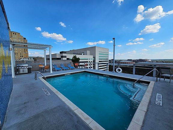- Exterior features: An iconic historic landmark, Concierge, Downtown Dallas, Electricity not included in rent, Flooring: Concrete, HOA dues covers all utilities except electric., Media Room, No Utilities included in rent, all electric property, built in cabinetry for storage, efficiency unit, historic building, located on 9th floor, steps from the vibrant Discovery District.