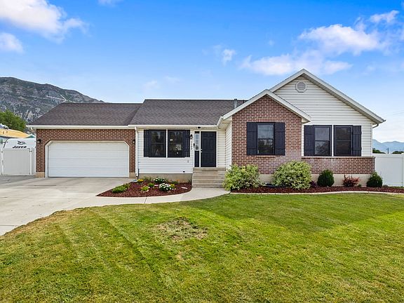 Beautifully remodeled 5-bed/3-bath on a .34-acre corner lot with panoramic Mt. Timpanogos views. The kitchen shines with a Quartz waterfall island, Samsung smart appliances, and modern finishes. New black-trim double-hung windows and a fully owned solar system (2017) boost comfort and cut energy costs. Outdoors, enjoy upgraded landscaping, an RV-friendly extra-long driveway that wraps to the backyard, and established fruit trees (pears, apples, plums, peaches, nectarines), berries (blueberries, blackberries, raspberries), grapevines, and six mature raised garden boxes. Prime location between Discovery Park and the new Cook Family Park, close to shopping, dining, and commuter routes. All information deemed reliable but not guaranteed; buyer to verify all. https://value-productions.aryeo.com/sites/zemmlaa/unbranded