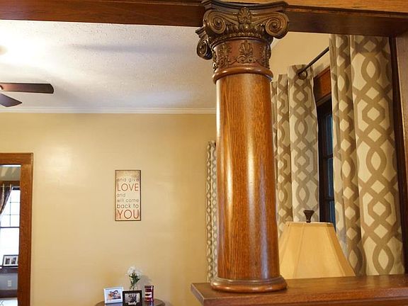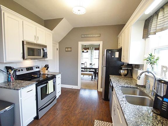 Beautiful Craftsman home on lovely tree lined street. All brick bungalow. Neutral décor. Home updated but has lovely original features such as original woodwork, doors & glass door knobs. Mud room off large covered, back deck. Kitchen completely remodeled. Bright, white cabinetry, granite counter tops, white subway tile back splash, flooring, stainless steel microwave, dishwasher, range & refrigerator. Formal dining room w/lots of oak woodwork as well as a spectacular carved column & capital. Living room has wood burning fireplace w/gorgeous, decorative Arts & Crafts tile work. Office area has beautiful built-in oak cabinetry. Three bedrooms. Two on first floor & one huge bedroom on second floor. Bath completely updated w/flooring, the same bright, white cabinetry as kitchen & all new bathroom fixtures. Lighting fixtures updated throughout except for second floor bedroom which has all vintage lighting fixtures. Spacious second floor bedroom has seating area w/domed ceiling at top of stairs & an arched side window. Relax & enjoy the views through the brick, archways on the covered front porch. Or on the large covered, back deck. Newer high fencing in fenced-in back yard. Back yard goes beyond back fence (.5 acre lot). Detached 3-car garage (one side is tandem).