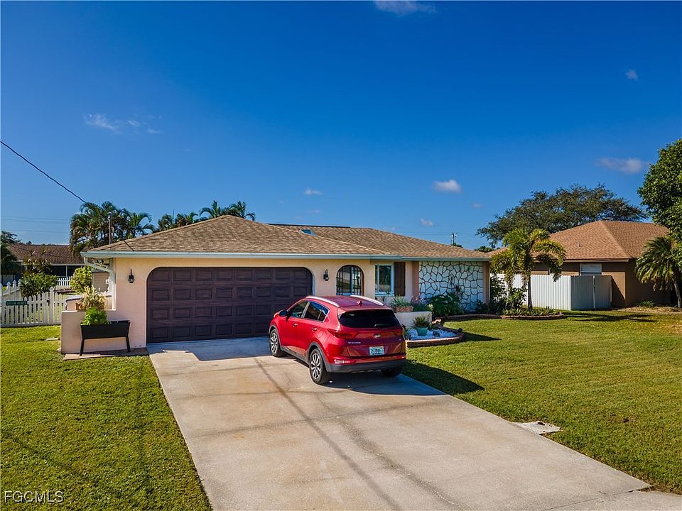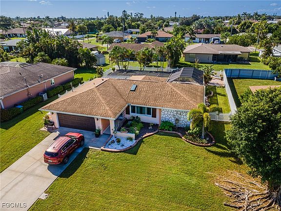 Great pool home with a huge lanai, perfect for entertaining! NOT IN A FLOOD ZONE! NO DAMAGES FROM HURRICANE IAN. All windows, garage door and front door are hurricane rated for winds up to 170 mph. Assessments are in and paid. The lanai features a built-in bar with a hand painted beach scene, a garden, and a heated pool. The kitchen was recently renovated. The living room has a skylight. The fenced backyard also features an additional patio. This house is perfect for a 2nd home, a vacation rental or for a young family.