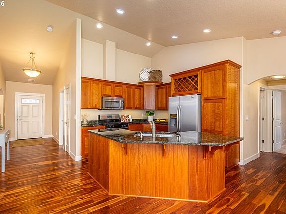 WOW! Check out this lovingly cared for move-in ready home situated in a beautiful, Creswell neighborhood! The wide entryway welcomes you in, boasting Acacia hardwood floors, vaulted ceilings, large windows and a terrific floor plan. Kitchen features cherry cabinets, island, granite counters, stainless appliances & large walk-in pantry. Spacious primary suite includes walk-in closet, en-suite with double sinks, tray ceilings with crown molding. 2nd bath remodel includeds ADA accessible shower. 4 bedrooms offer plenty of space for growing families, guest rooms or home office. Fully fenced yard, additional paved parking for small RV or boat, storage shed, covered back patio, underground sprinklers & more!