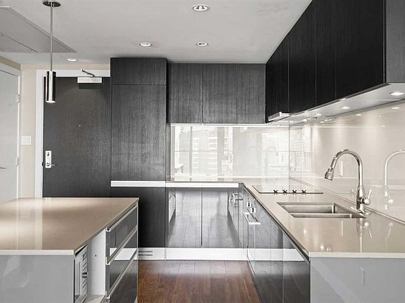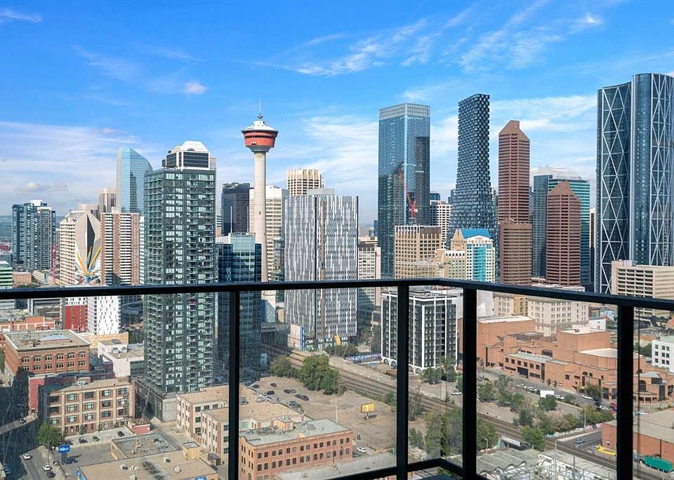 Welcome to this stunning one-bedroom condo located on the 28th floor of a modern high-rise in one of downtown Calgary’s most desirable areas. Enjoy breathtaking panoramic views of the city skyline from your spacious living room or large private balcony—perfect for morning coffee or evening sunsets. The popular '08' floor plan features a smart, open layout ideal for modern urban living. The sleek kitchen boasts European-style cabinetry, quartz countertops, built-in appliances, a dishwasher, and garburator. The interior adds a clean, contemporary feel throughout. The generous bedroom includes a large walk through closet with upgraded built in cabinetry, and the in-suite laundry room offers extra storage for added convenience. A titled underground parking stall is included for secured parking. This pet-friendly building offers top-tier amenities, including a garden terrace with BBQs, residents' lounge, premium fitness center, workshop room and concierge services. Situated steps from cafes, restaurants, shops, and public transit, this condo offers unbeatable value for first-time buyers, investors, or anyone seeking a vibrant downtown lifestyle. Don’t miss your chance to own one of Calgary’s finest condos in the heart of the city!