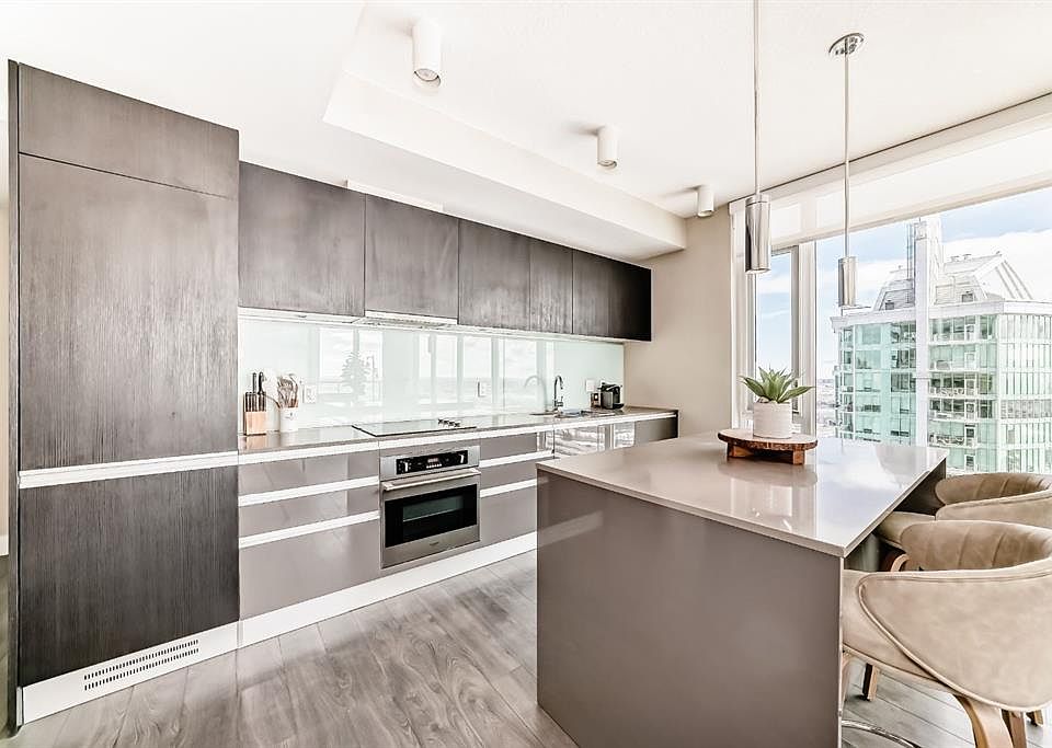 *First 3 months of condo fees covered by seller!* Welcome to this exquisite 33rd-floor corner unit with two balconies offering breathtaking views! To the east, you'll enjoy stunning river views, and to the south, you'll be treated to picturesque vistas of the Stampede Grounds, Saddledome and the new site of Scotia Place. On a clear day, you'll have Mountain views as well! This unit, located in the Guardian I, features a well-thought-out layout with two bedrooms strategically placed for privacy, along with two full bathrooms. The gourmet kitchen features a spacious island with beautiful quartz countertops and a convenient breakfast bar. High-end stainless steel appliances, sleek modern cabinetry complete the stylish aesthetic of the kitchen. Additionally, the unit is equipped with in-suite laundry for added convenience. The living room and open-concept kitchen/dining area are enveloped by floor-to-ceiling windows, immersing the space in natural light and providing captivating views of the surroundings. This unit also offers titled underground parking for your vehicle, as well as a separate storage locker to accommodate your belongings. The presence of a dedicated concierge ensures a high level of convenience and security for residents. The Guardian I provides an array of exceptional amenities for its residents to enjoy. The social lounge is perfect for entertaining guests or mingling with neighbors, while the garden terrace offers a serene outdoor space to relax and unwind. For fitness enthusiasts, the gym has impressive city views and loads of equipment, so convenient to enjoy before or after work. There is also a workshop equipped with a workbench and hand tools for those who enjoy hands-on projects and craftsmanship. Enjoy this trendy neighborhood, which offers a host of attractions just steps away from your doorstep. You'll find yourself in close proximity to the iconic Saddledome, Stampede Park, the National Music Centre, Sunterra Market, and the stunning Central Library. With an abundance of entertainment options, dining experiences, and convenient amenities, this neighborhood is the epitome of vibrant and convenient urban living.