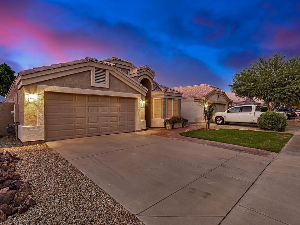 Discover the perfect blend of comfort and style in this hard-to-find 4-bedroom, single-level home with great curb appeal, featuring a green lawn and a red paver walkway. Located in a prime Chandler neighborhood with easy freeway access, this popular split floor plan boasts vaulted ceilings, and neutral finishes throughout. The kitchen is a chef's delight with a large island, under-cabinet lighting, stainless steel appliances, and a contemporary backsplash. The home also includes upgraded pendant lighting. The Jack and Jill guest bathroom features upgraded granite counters, updated fixtures, and a tile tub surround, while the master suite offers dual sinks, a private toilet room, and a walk-in closet. Additional highlights include an insulated garage door and a sparkling pool!