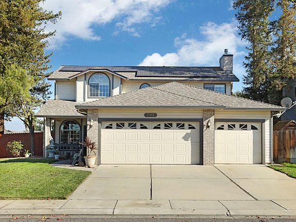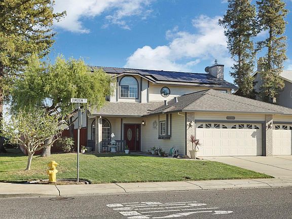 Welcome to 1122 Zumstein Ct. This beautifully maintained 4-bedroom, 3-bathroom home sits on a spacious corner lot in a quiet, established Ripon neighborhood near parks, schools, and shopping. The open downstairs layout includes a living room, family room with fireplace and backyard access, a bedroom, and a full bath. Laminate flooring runs throughout the living areas with carpet in all bedrooms, plus ceiling fans in every room. The kitchen features a electric range, microwave, dishwasher, and a breakfast nook that is used as a reading area. Home also has a dining room with French doors leading to the backyard. Enjoy a resort-style pool with stamped concrete, rock waterfall, solar heating, wrought-iron fencing, and low-maintenance landscaping. Additional upgrades include solar panels, a newer roof, and a concrete block rear wall. The primary suite offers vaulted ceilings, a sitting/dressing area, 2 walk-in closet, and a spacious bath with separate tub, shower, and dual vanities. An upstairs full hall bath also features dual vanities. The home includes central HVAC, indoor laundry with cabinets, a 3-car garage, and side yard access on both sides. The outdoor gazebo provides a perfect shaded area for BBQs or relaxing by the pool.
