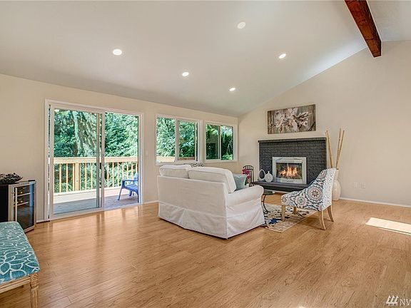 Modern multigenerational home offers exceptional privacy, situated on a private drive near beautiful Carkeek Park. This home boasts vaulted ceilings, 2 decks, skylights, 3 kitchens and communal spaces in shared porches, laundry and garden/ courtyard. The first level hosts a spacious 1 Bedroom MIL, plus a studio apt. Upper level features beautiful new open kitchen, baths, lighting, flooring & spacious master w/en suite. Solidly built and maintained, this renovated home has the amenities you want.