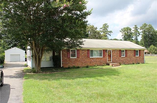 Three bedroom, two bath brick ranch on more than a half acre with an over sized one car garage and fenced back yard. From the front door, enter the large carpeted living room with coat closet. To your right, the hall leads to a generous tiled full bath and three bedrooms, two with lighted ceiling fans and all have double closets - the master bedroom also has a private bath with shower. The eat-in kitchen may be accessed from the living room, as well, and from the kitchen you may enter the family room with gas fireplace, ceiling fan and overhead light or the utility room, which provides egress to a covered deck. From the family room enter the cheery sun room from which you have easy access to the paved drive and detached garage. Heat pump is approximately four years old, septic was pumped in 2015. The property is being sold in "as-is" condition. Cosmetics are needed and the roof is older.