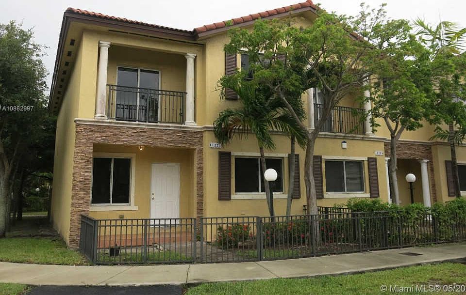 Beautiful 3 bedroom townhome in well-kept Silver Palm Community. Tile floors on first floor, attractive wood floors on second story for bedrooms. Private entrance through rear of home with brick driveway and garage parking. This perfect home features a formal dining room, open kitchen and family area, spacious master bedroom with on-suite bathroom, and balconies in every bedroom. Enjoy a calm family community in the heart of South Dade, close to shopping and dining with easy access to US-1. Everything you want in an amazing home!