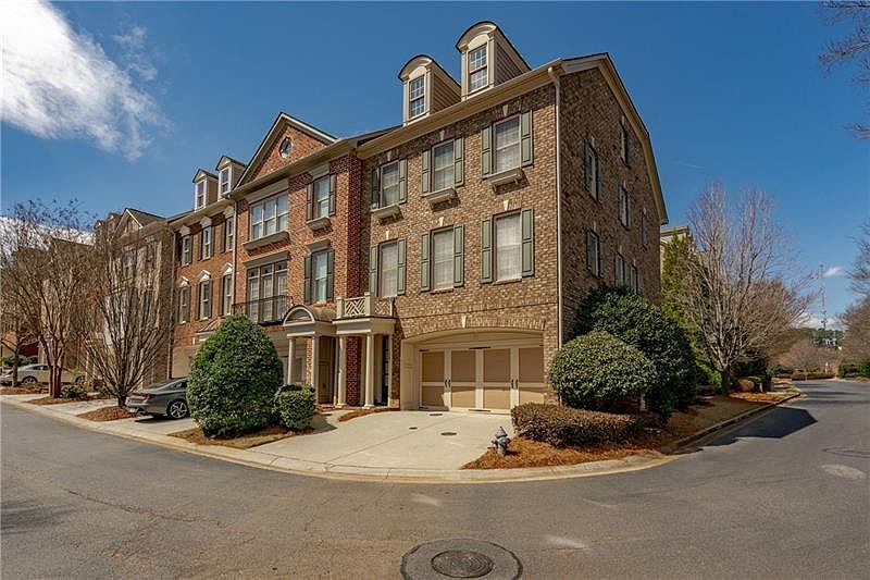 Gorgeous End Townhouse is tucked away in the most perfect location! Convenient to so much, including Big Creek Greenway, walking distance to highly rated Fulton Science Academy Private School, Ameris Bank Amphitheatre and Encore Park; Top Golf, endless shopping with over 250 shops and 250 restaurants, close to 400, Avalon and so much more! Main level with beautiful hardwood flooring is fantastic for entertaining with its spacious great room with gas fireplace, built-in bookcases on each side of the fireplace with cabinet doors and shelving for plenty of storage, open to a spacious dining room! Doors off the great room to large deck for added entertaining space or just to relax and enjoy the fresh air. A Chef's Kitchen with island, gas cooktop, lots of cabinet space, granite countertops, pantry, stainless steel appliances, breakfast bar and eating area with plenty of space for table and chairs. Upstairs features a large master bedroom with ensuite with two vanities, separate shower and jetted soaking tub; two secondary bedrooms and bathroom; laundry room. Lower level features a flex room, use it in so many ways! It would make a great in-law suite, office, craft room and of course a bedroom as it has a full bathroom plus it has an exterior entrance to backyard and garage. Two car attached garage, with extra storage plus room for more cars in the driveway. Clubhouse, pool, fitness space and greenspace add to this amazing community!