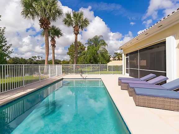 Nestled on a premium lakefront lot, this beautifully remodeled Oakmont model with pool offers one of the finest locations & views in the community. The outdoor living area features an open-air pool with tranquil lake views, screened patio with travertine tile, roll down shades, accordion shutters on side & rear windows, lush custom designed landscaping & a welcoming extended paver driveway. Completely renovated in 2022, this move-in ready home showcases modern, stylish updates throughout. The kitchen is a showstopper with custom cabinetry featuring pull-out drawers, quartz countertops, designer tile backsplash, stainless steel appliances, upgraded sink, & contemporary lighting, fans, & hardware. The primary suite is equally impressive, offering a spa-like bath with soaking tub,...see more Nestled on a premium lakefront lot, this beautifully remodeled Oakmont model with pool offers one of the finest locations and views in the community. The outdoor living area features an open-air pool with tranquil lake views, a screened patio with travertine tile, roll down shades, accordion shutters on side and rear windows, lush custom designed landscaping and a welcoming extended paver driveway.
