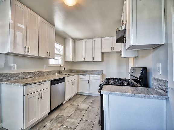 Beautiful 2 bedroom house with a den that was last used as a third bedroom. Remodeled kitchen with new white shaker cabinets, quartz countertops, stylish tile floors, and new appliances. Spacious living room with new laminate wood flooring. Bedrooms and den have new carpet. Fresh paint inside and out. Great curb appeal, lawn with automatic sprinklers and new front fencing. 2 car garage with automatic roll up door. Nice sized backyard with a mature lemon tree, perfect for entertaining and play.