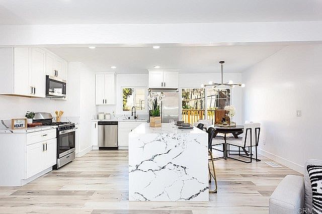 Absolutely Stunning Eucalyptus Hills Home! This 3 bedroom 2.5 bath Home features a remodeled Kitchen with Quartz counter-tops, Stainless Steel Appliances, Waterfall Island, Brick fireplace in the living room, designer flooring, Porcelain tile in bathrooms and a two car garage. Large family room or Optional Bedroom downstairs with many possibilities! It can be converted into a large master suite, office, or an ADU since it has a separate entrance, possibilities are endless! Sitting on a private road, large lot over an acre and has plenty of room to store toys and room to build an ADU. Don't wait, this home will not last long!
