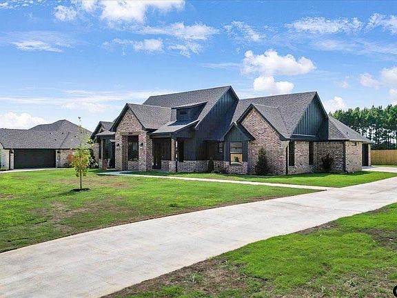 Welcome to 11224 Bryce Cir Flint, TX 75762! This new construction offers modern elegance with farmhouse charm, highlighted by its brick exterior. Situated on 0.8 acre lot with a fenced backyard, this home combines style and functionality with a three-car garage and custom home finishes throughout. Inside, the open-concept layout features 5 bedrooms, 3.5 baths, and a split-bedroom arrangement. The living room boasts a gas fireplace and unique lighting features in the ceiling beams, creating both warmth and character. The kitchen includes a gas cooktop and grill stub-out for outdoor cooking. The primary suite offers a luxurious bath with a walk-through shower, freestanding tub, and walk-in closet. Additional highlights include Jellyfish exterior lighting, a tankless water heater, and thoughtful gas connections for efficiency. With attention to detail at every turn, this home is ready for its first owners. Schedule your private showing today!